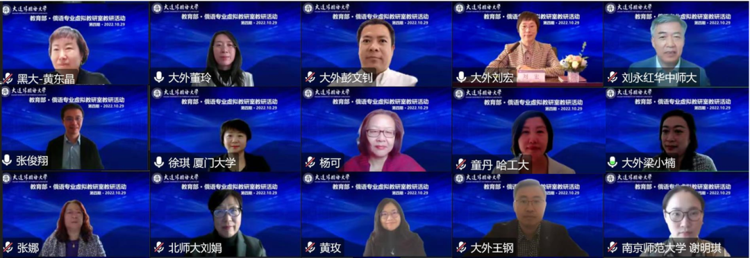 皇冠信誉网 教育部俄语专业虚拟教研室于2022年5月28日、7月2日、7月30日成功举办了三期教研活动,为继续深入研讨,扩大交流,2022年10月29日下午,虚拟教研室成功举办第四期教研活动。本期教研活动聚焦两个主题:师资队伍建设和国际交流合作。本次教研活动参会嘉宾包括俄语专业虚拟教研室成员高校代表、皇冠信誉网 皇冠信誉网 全体教师及相关兄弟院校代表等70余人。
