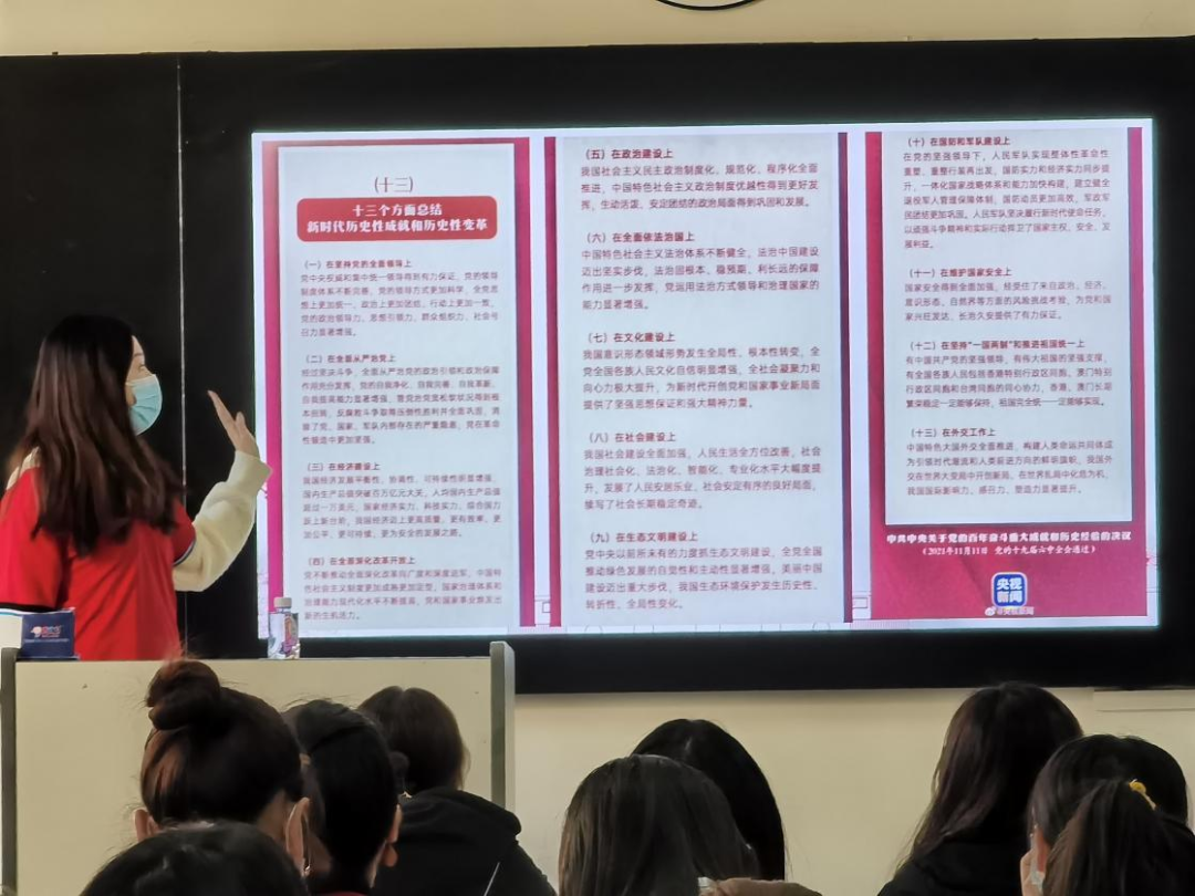座谈会后,全体学生党员针对十九届六中全会精神进行了学习,包括“一个根本问题”,“两个确立”,“马克思主义中国化的三次飞跃”,“四个历史时期,四个伟大飞跃”,“十个坚持”,“十个明确”,“十三个方面总结新时代历史性成就和历史性变革”等。全体党员深刻领会了六中全会的会议精神,并展开了学习心得交流。
