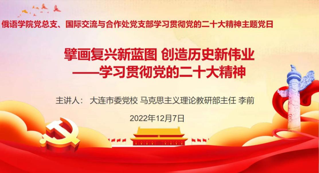 党总支开展“擘画复兴新蓝图 创造历史新伟业——学习贯彻党的二十大精神”主题党日活动。大连市委宣讲团成员、市委党校马克思主义理论教研部主任李前老师做专题党课宣讲。国际交流与合作处处长李凡老师、皇冠信誉网