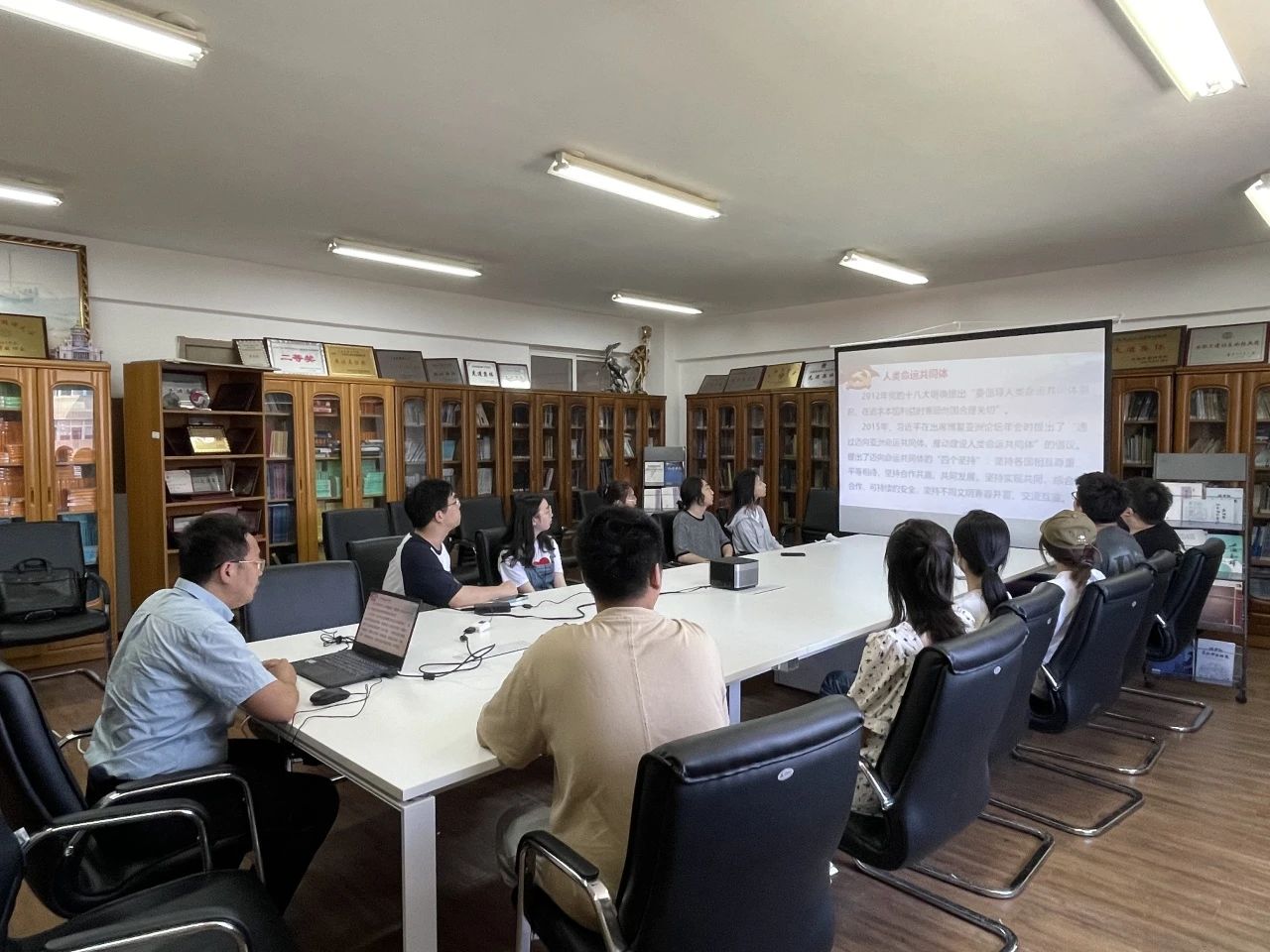 王钢老师首先向各位党员同志解释“人类命运共同体”的概念及强调其提出的新时代意义。随后,王钢老师列举了中国在构建“人类命运共同体”方面的杰出成果,其中包括:“中欧班列十周年”、“一带一路”国际合作高峰论坛”、“中乌与中哈合作”、“中国—中亚峰会”等。最后,王钢老师以“青年人”视角谈如何积极推进人类命运共同体建设。青年是知识的传承者,是中国故事的传播者,能不能讲好中国故事,能不能创新中国好故事,新时代青年扮演着重要角色。讲好中国故事,传播好中国声音,是新时代外语人肩负的使命与担当,王钢院长号召青年党员应矢志不渝,为国家发展做出贡献。