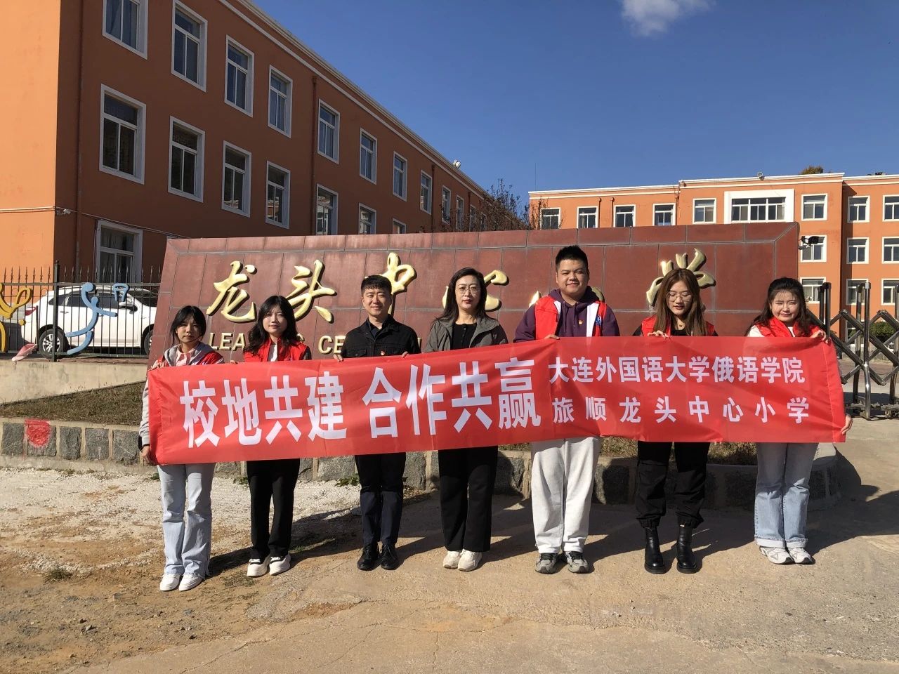 党总支书记梁小楠、分团委书记、辅导员王健和党员团员学生代表赴旅顺龙头中心小学开展“党建引领团建,共促基层治理”活动。