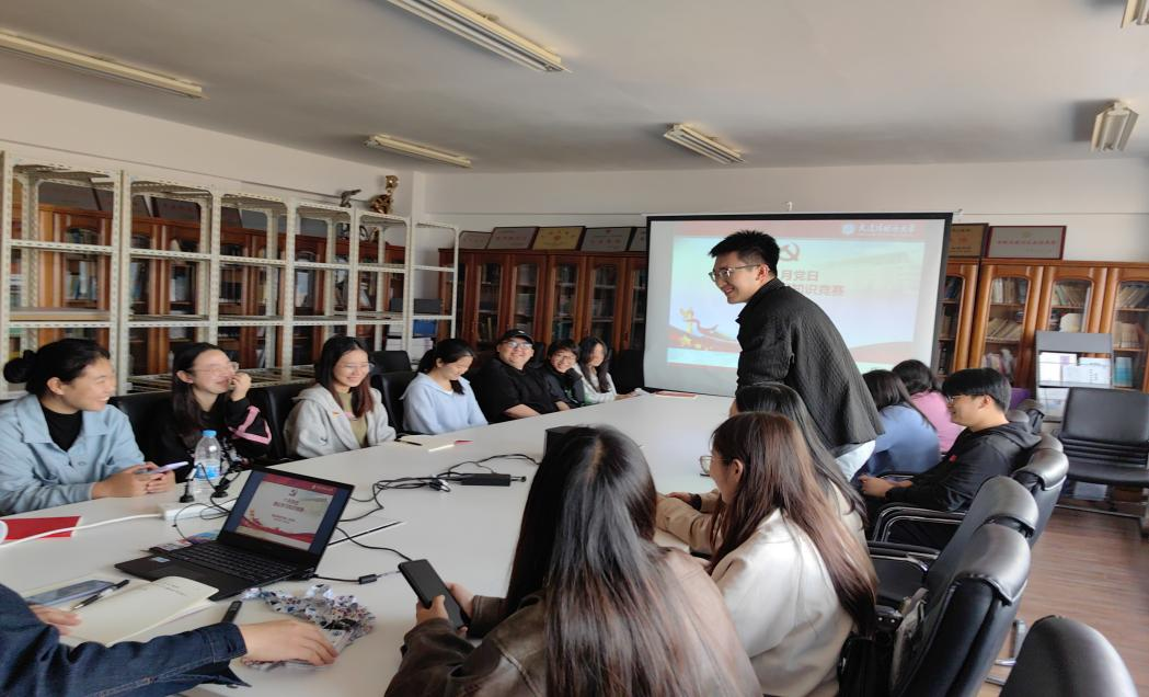 在本次党日第一项活动中,王健老师带领全体党员围绕习近平总书记主持召开新时代推动东北全面振兴座谈会中所强调的“牢牢把握东北的重要使命 奋力谱写东北全面振兴新篇章”为中心,深入学习了《中国共产党党徽党旗条例》《辽宁全面振兴新突破三年行动方案(2023—2025年)》等文件中的理论精神。随后举行了理论知识竞赛,以激发同学们的理论学习积极性,党员们踊跃参与其中,气氛活跃。