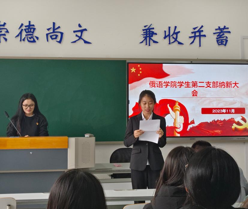 本次纳新成员的发展对象是21级4班的于晓雯。她向党组织宣读了入党志愿书,就自己对党的认识、为什么要加入党、加入党后要如何发挥党员作用发表了自己的心得想法,并对加入党成为一名光荣的共产党员表达了强烈意愿。