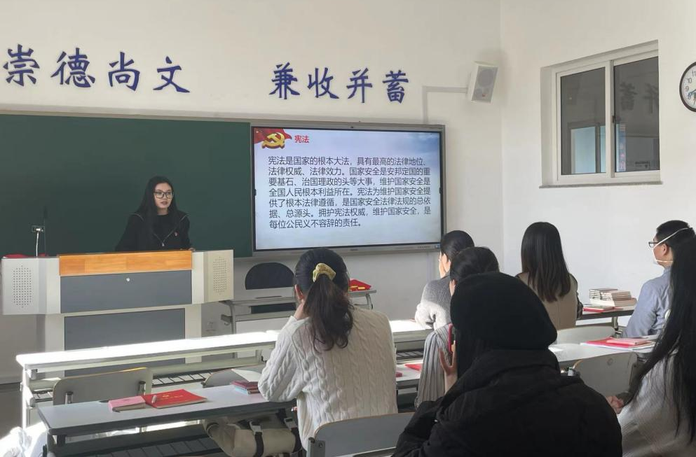 随后开展本次党日第二项活动,党支部书记美合日古丽老师为全体党员讲党课,带领支部党员共同学习宪法知识。习近平总书记在第十个国家宪法日之际作出重要指示,强调要坚定维护宪法权威和尊严,推动宪法完善和发展,更好地发挥宪法在治国理政中的重要作用。听完老师的讲解,大家对宪法相关知识有了更深的认识和理解。宪法是国家的根本大法,是治国安邦的总章程,是党和人民意志的集中体现,全体学生党员已然牢记于心。
