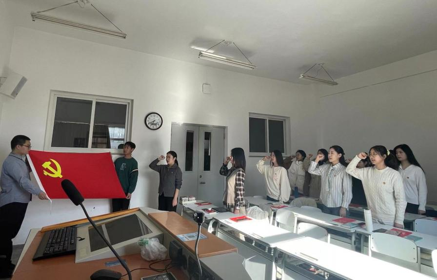 党日活动第一项内容是举行新党员入党宣誓和老党员重温入党誓词仪式。在党支部组织委员周彤彤的带领下,全体党员面对党旗,举起右手,庄严宣誓,坚定共产主义的理想信念,牢记入党时的初心使命。