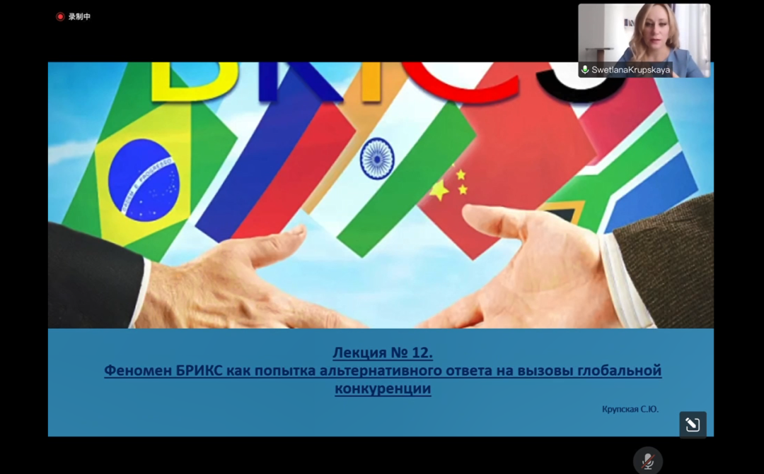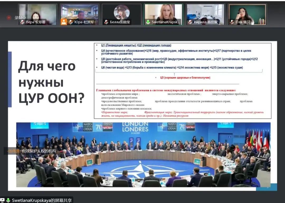 本次课程中我首次接触到了区域学的相关科目,学习到了各类国际组织的起源、发展、目标、成就等等,老师的讲授清晰,结合杜老师给出的翻译也能够理解大部分的授课内容。此外通过这次学习也了解到了俄罗斯的教学方式和特点,对今后的出国学习有了初步的线上体验。