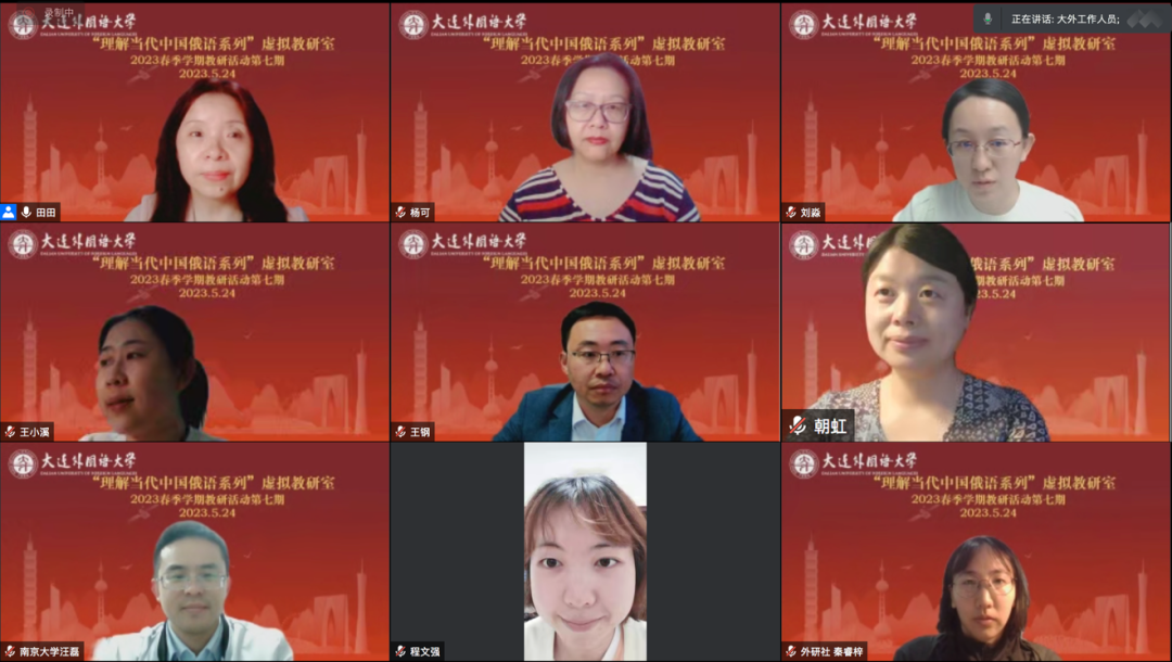 刘宏教授主持的教育部“理解当代中国俄语系列”虚拟教研室2023春季学期教研活动第七期在云端成功举办。来自虚拟教研室成员高校和国内其他高校的教师、外研社综合语种教育出版社的领导和编辑以及皇冠信誉网