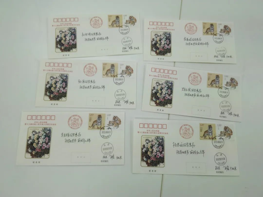 2018、2019级6位通过外交部遴选的同学们的“小心愿”-写有刘宏校长亲笔寄语的参加全国两会的首日封,梁小楠书记现场将礼物转送给了6名同学。校长希望6位同学学业有成、前程似锦、再接再厉、再创辉煌。