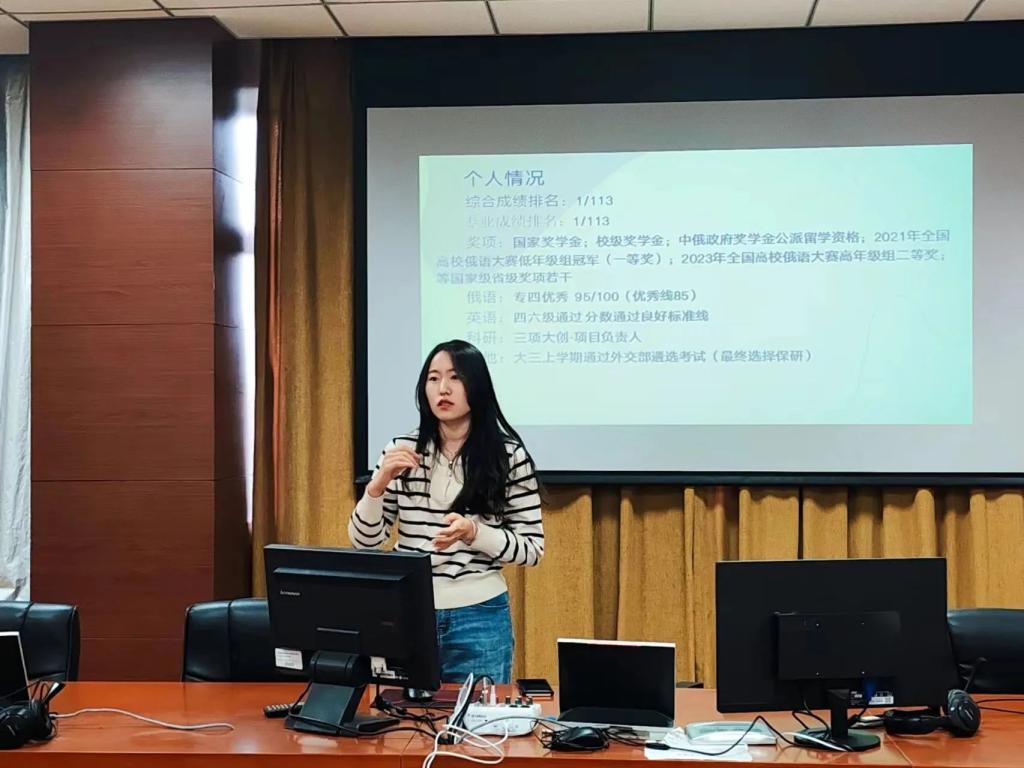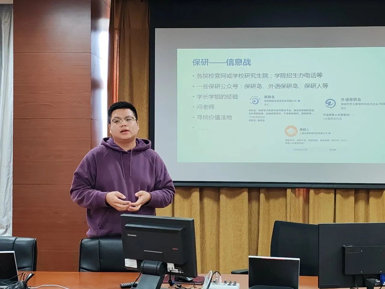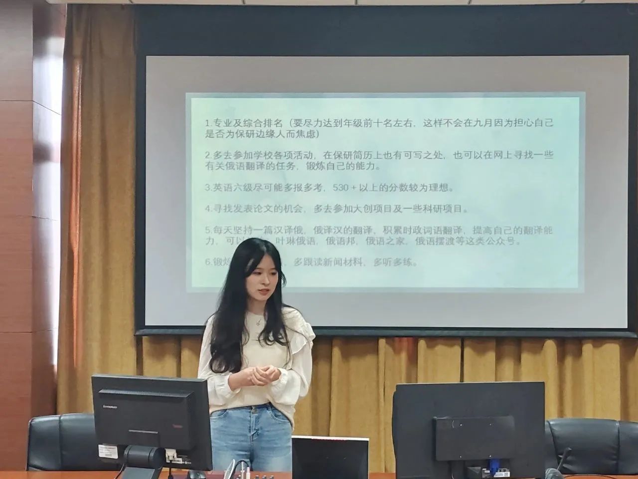 于本周在口译实验室举办2024届保研推免、学习经验分享会,低年级同学参会。