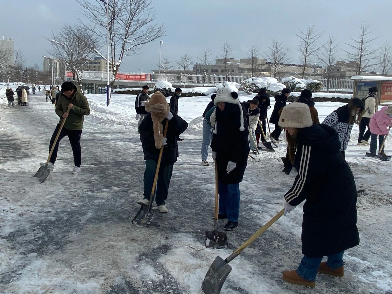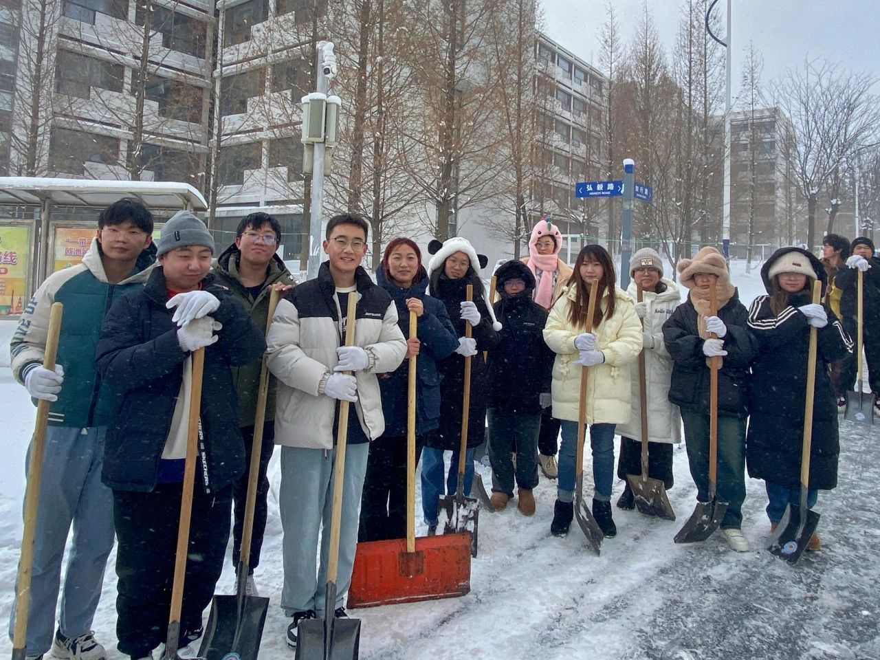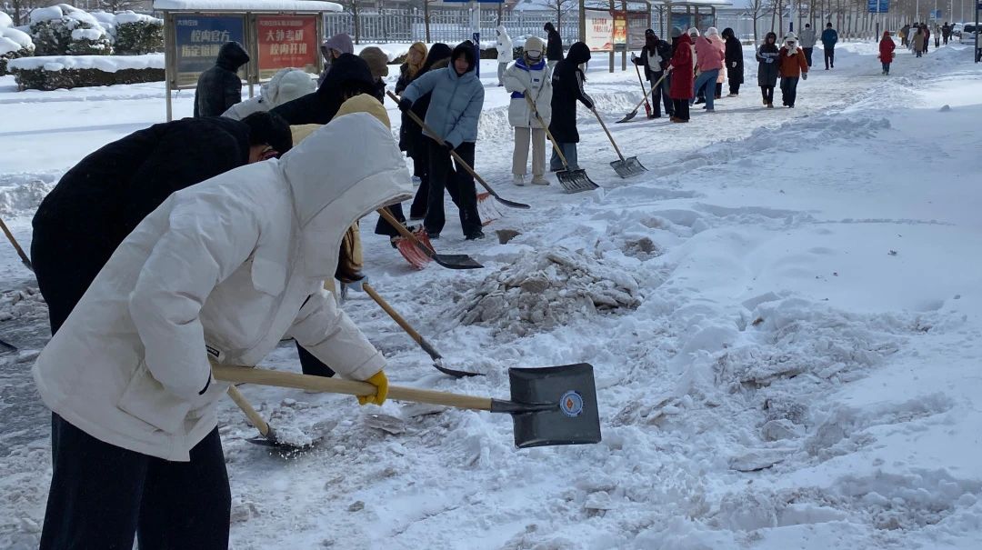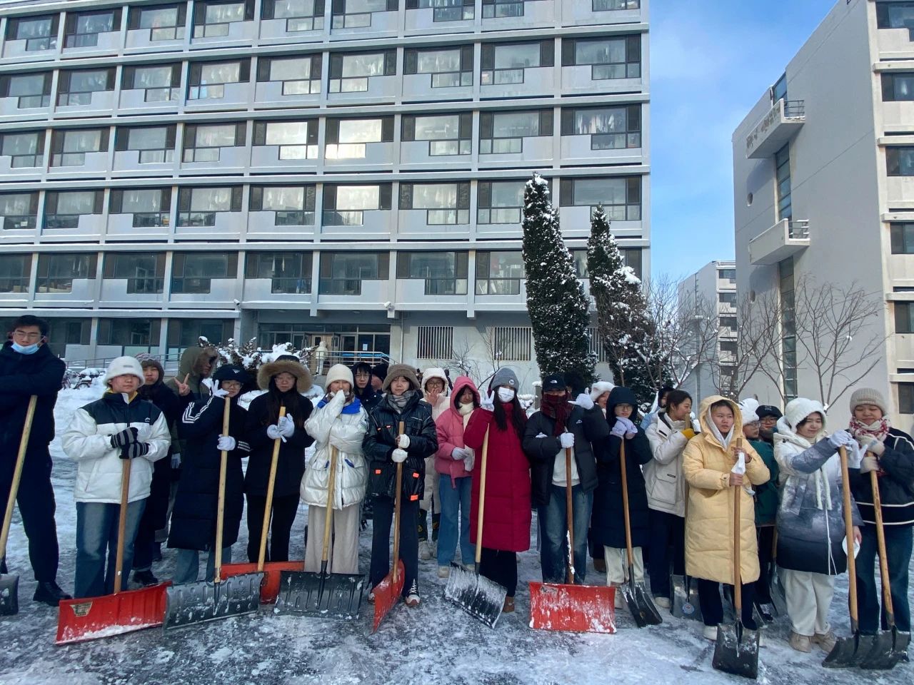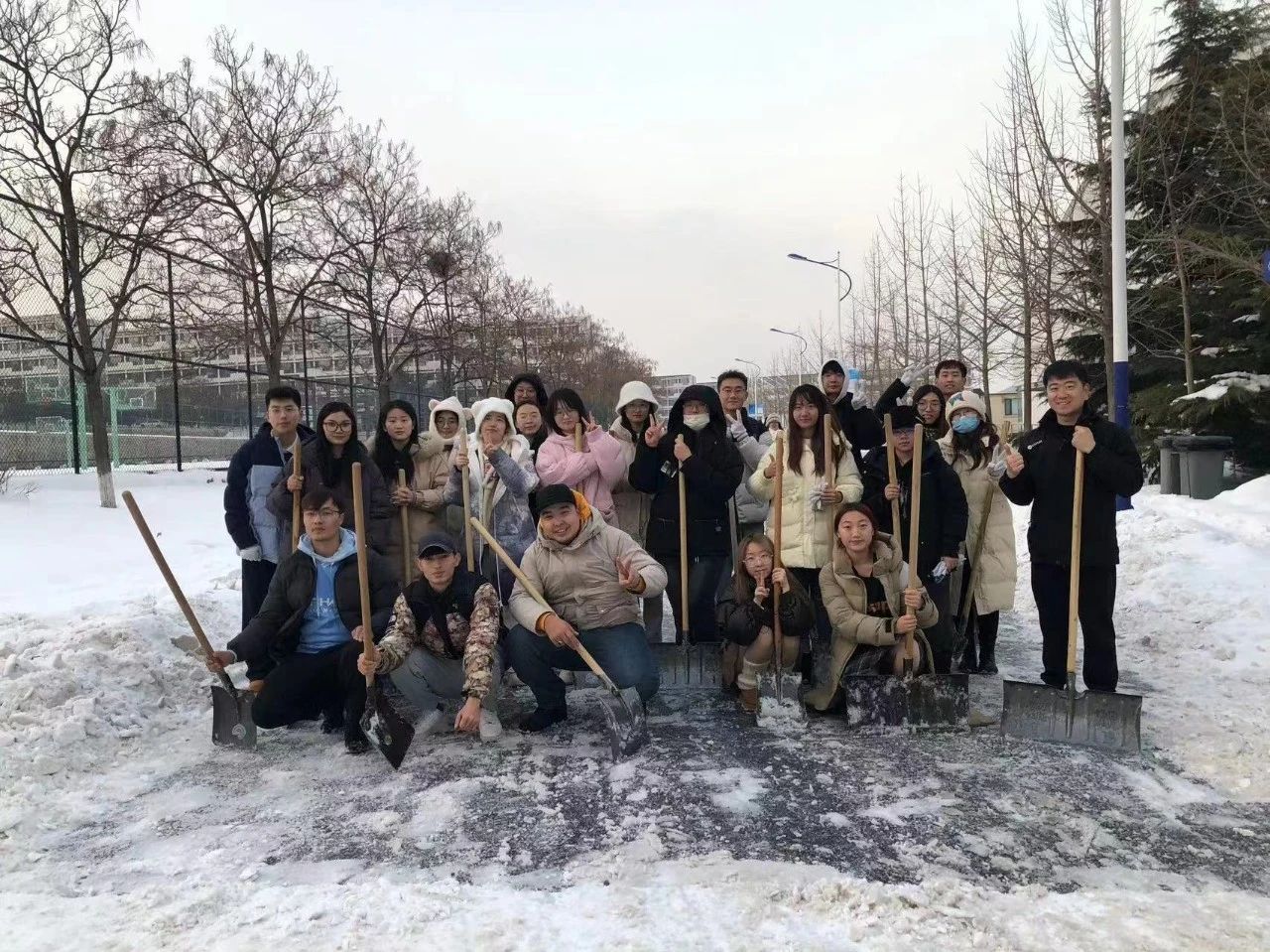 组织各年级150余名志愿者队伍12月21日、25日下午分批次进行扫雪工作