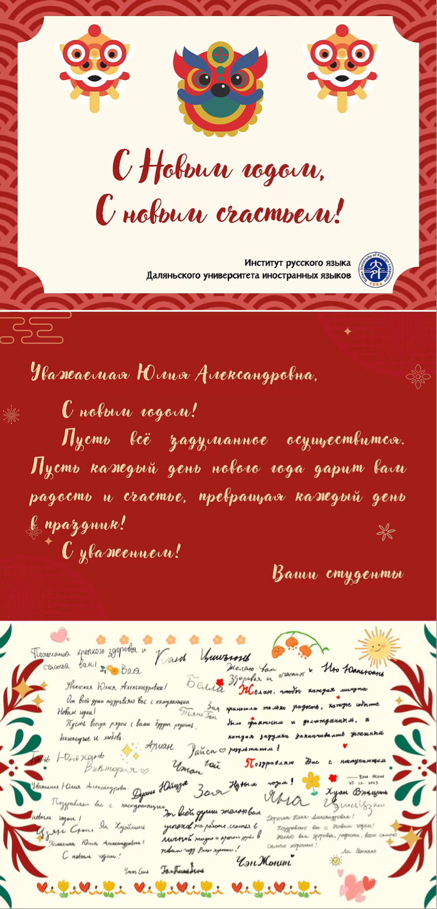与别尔格罗德国立大学联合开发并实施的国际化系列课程之“俄罗斯联邦法律”在全体同学的新年祝福声中顺利结课。同学们向科姆纳特娜娅老师的辛勤付出表达了最衷心的感谢,并送上了带有所有同学签名的新年贺卡以及最美好的新年愿望。