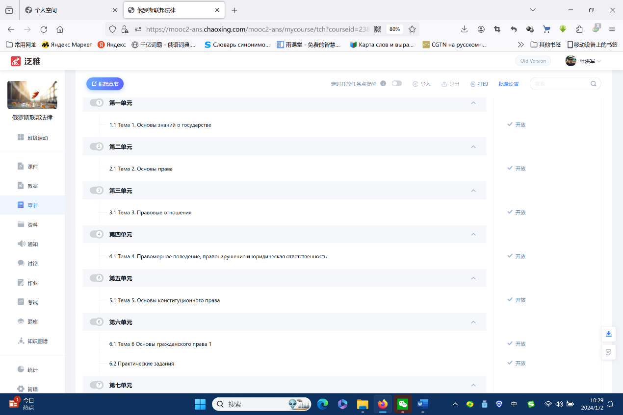 本课程于2023年10月31日启动,每周4课时,共历时两个月,在线上教学的同时完成了学习通平台该课程的慕课建设。课程由别尔哥罗德国立大学的Комнатная Юлия Александровна老师主讲,皇冠信誉网