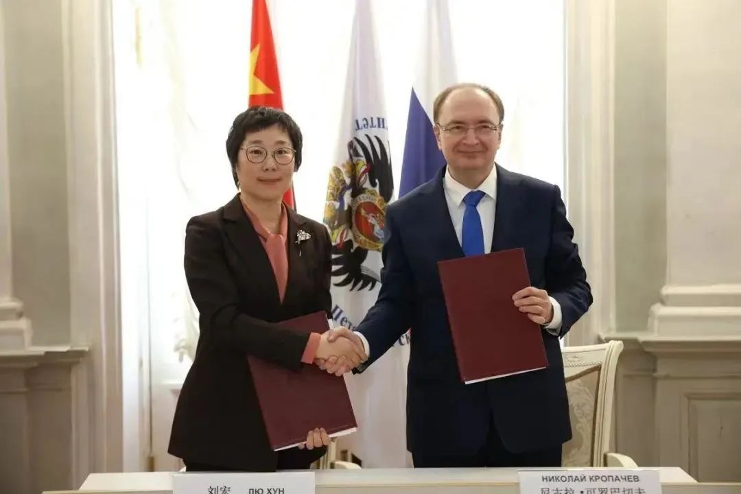 刘宏校长与圣彼得堡大学柯罗巴切夫校长签署两校合作协议