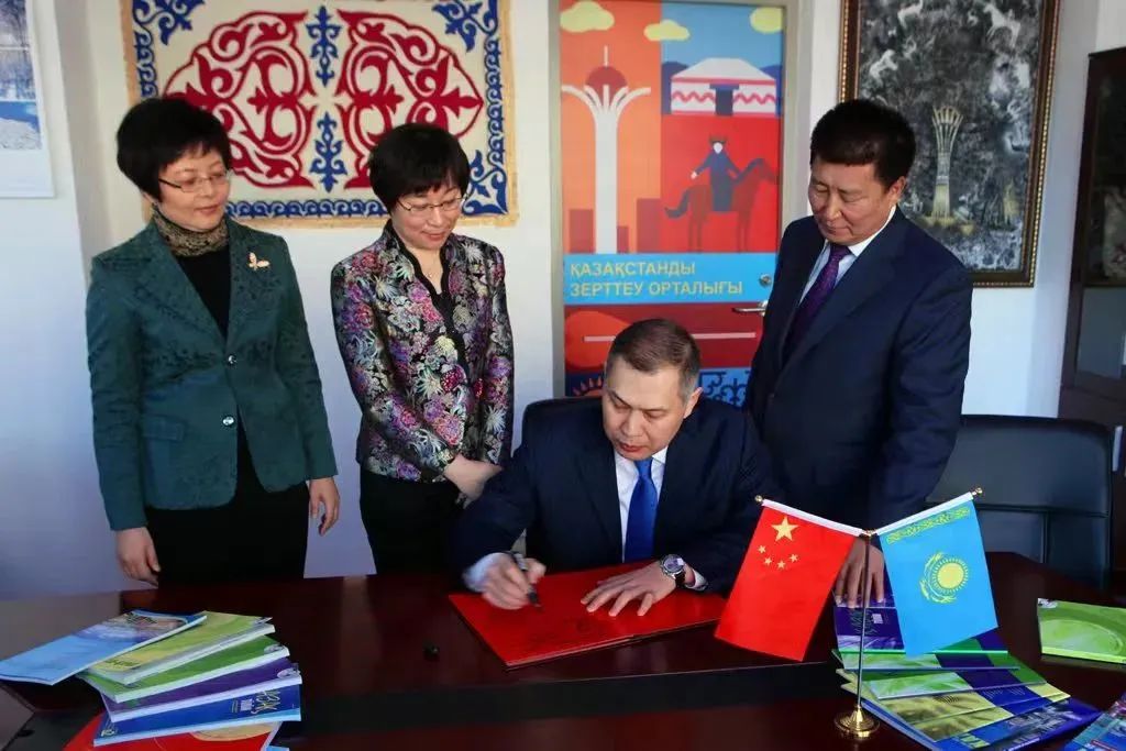 哈萨克斯坦驻华大使沙赫拉特·努雷舍夫在哈萨克斯坦研究中心签字留念