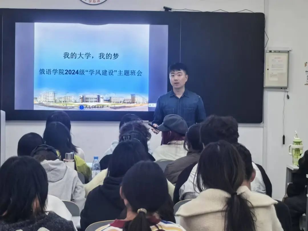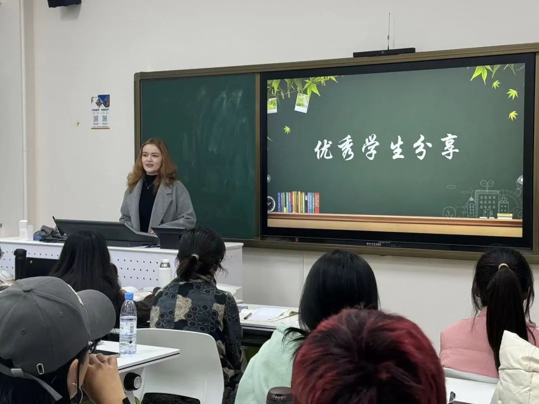 在各班“学风建设”班会上,皇冠信誉网 聚焦大一新生普遍面临的俄语学习上的困难和挑战,每班特别邀请两位优秀的学长学姐,为大一新生分享宝贵的学习经验和心态调整方法。班会分成两个部分,第一部分邀请优秀的学长学姐进行学习方法、经验以及学习感受的分享,优秀学生代表强调语言是一个工具,要多去实践,利用周围的资源,通过推己及人的方式为大一的同学们学好俄语指明了方向并奠定了信心。第二部分邀请学长学姐分享了自己大学生涯规划,通过分享增强同学们职业生涯规划意识,提高职业生涯规划能力,明确未来职业发展方向。