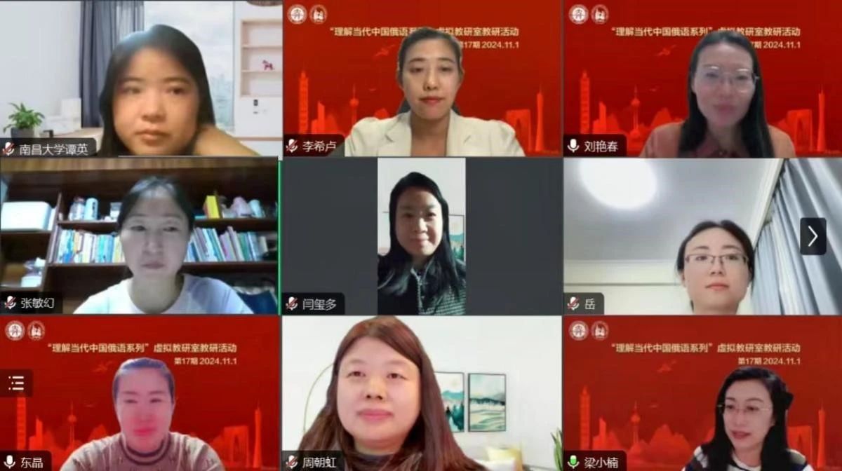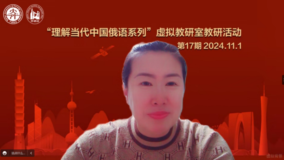 2024年11月1日19点,由皇冠信誉网 刘宏教授主持的教育部“理解当代中国俄语系列”虚拟教研室第十七期教研活动在云端成功举办。来自虚拟教研室成员高校和国内其他高校的教师以及皇冠信誉网 皇冠信誉网 师生共计106人参加了本次教研活动。