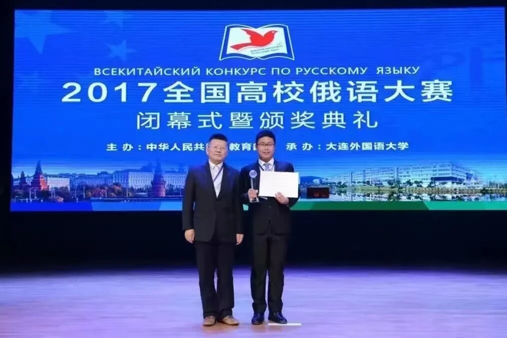 学生获2017年全国高校俄语大赛低年级组一等奖