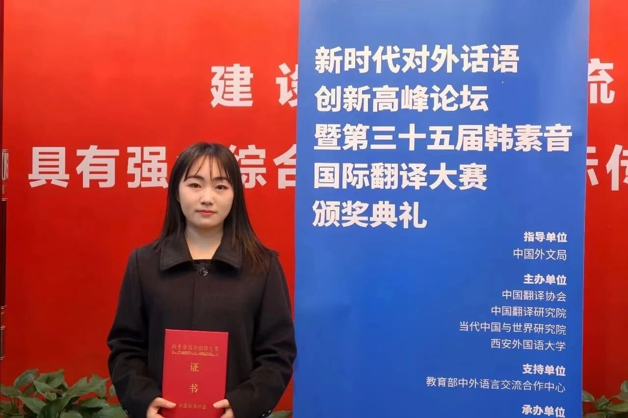 陈芳博获得第三十五届韩素音国际翻译大赛一等奖
