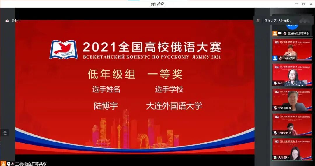 学生获2021全国高校俄语大赛低年级组一等奖