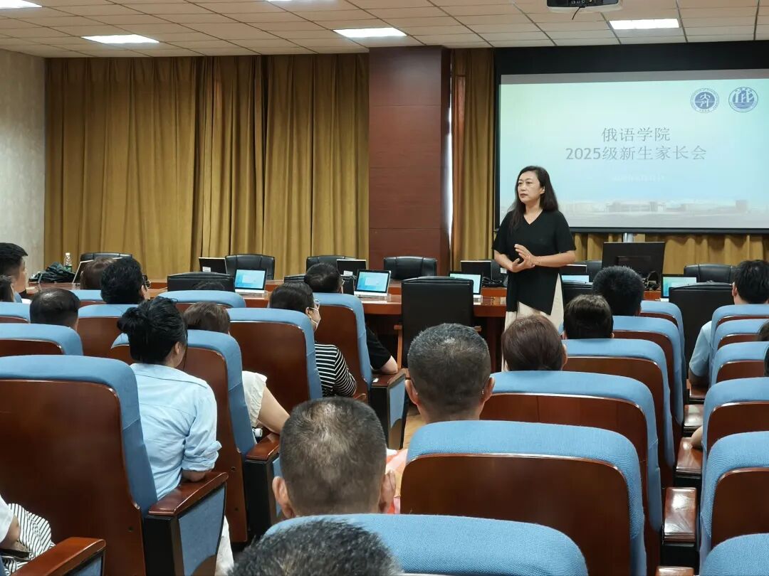 下午1点半,励学楼口译实验室里座无虚席,2025级新生家长会在此温馨召开。会上,院长梁小楠围绕专业课程、实习实践、国际交流等方向展开说明,清晰勾勒“有专业本领、有家国情怀、有国际视野”的人才培养路径;新生辅导员王健则详解奖助学金、入党流程、保研政策,让家长全面了解皇冠信誉网