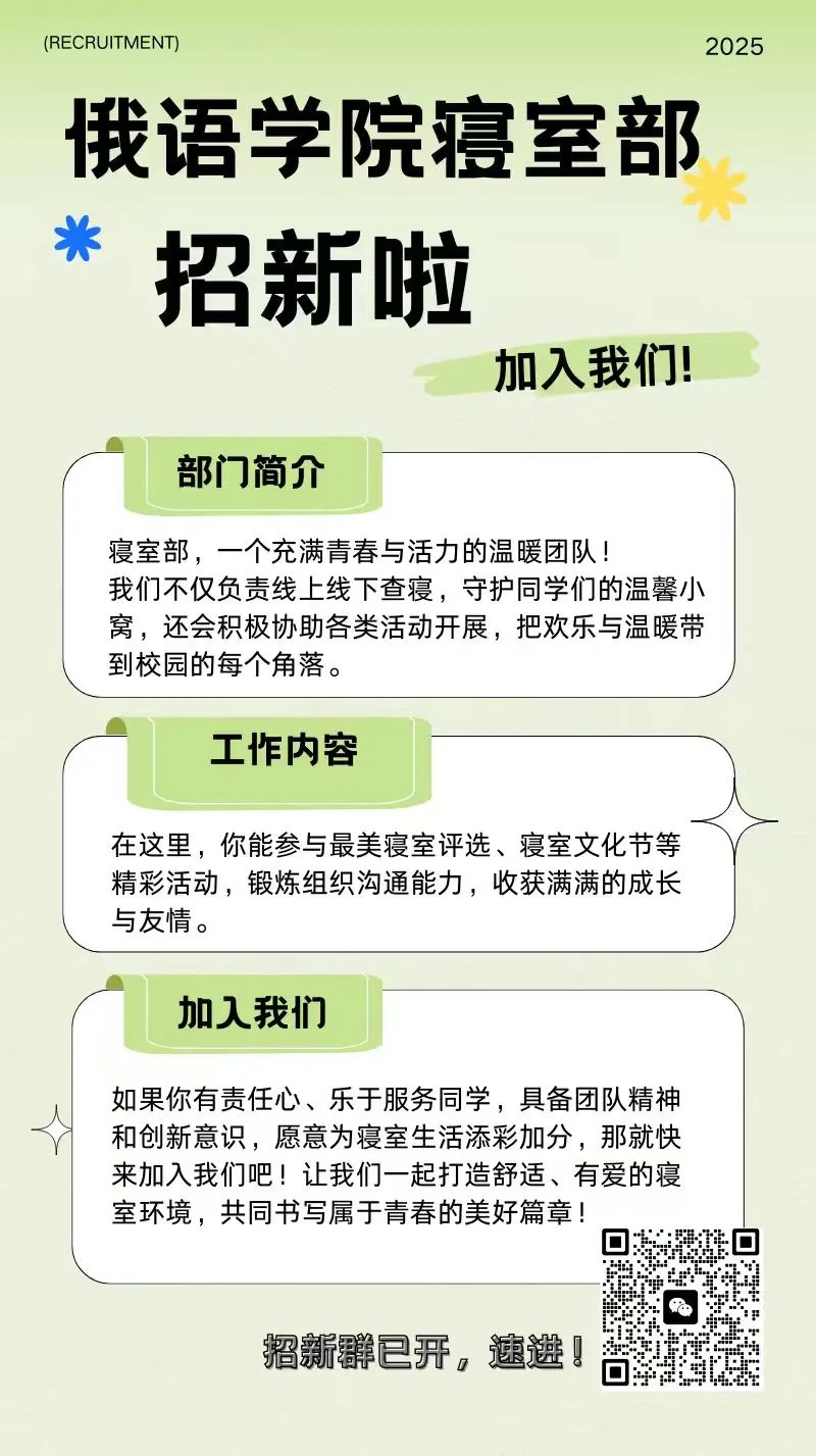 嗨!2025级的俄语小萌新们,崭新的大学生活已经拉开帷幕,你们准备好用俄语书写不一样的青春故事了吗?你是否在学好俄语的同时,也能在校园里大展身手、结识更多志同道合的朋友?皇冠信誉网 第56届分团委学生会招新啦,下面就让我们一起去看看各个部门,相信总有一个能让你心动不已~
