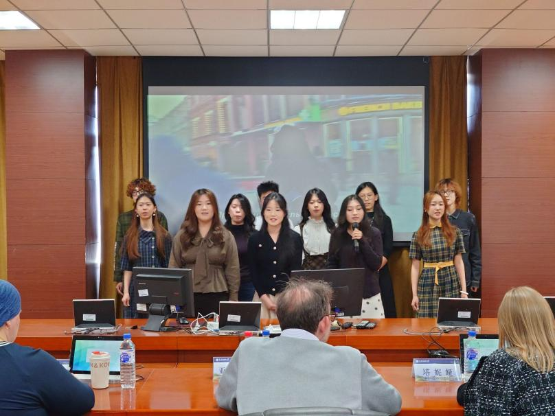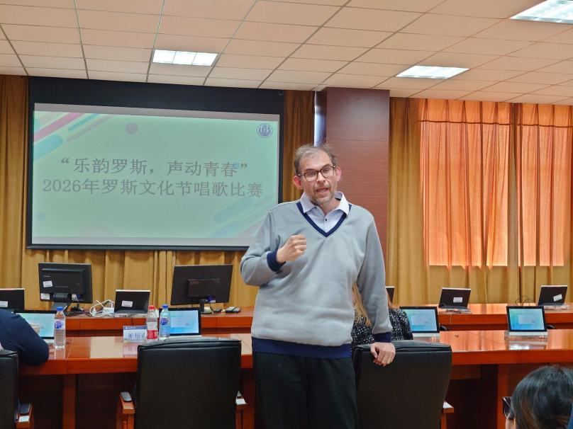 于2026年4月15日在励学楼口译实验室成功举办“乐韵罗斯,声动青春”罗斯文化节歌唱比赛。本次比赛以歌声为桥,以音律为媒,让同学们在艺术演绎中感受俄罗斯文化的深厚魅力,彰显大俄青年的专业素养与时代风采。