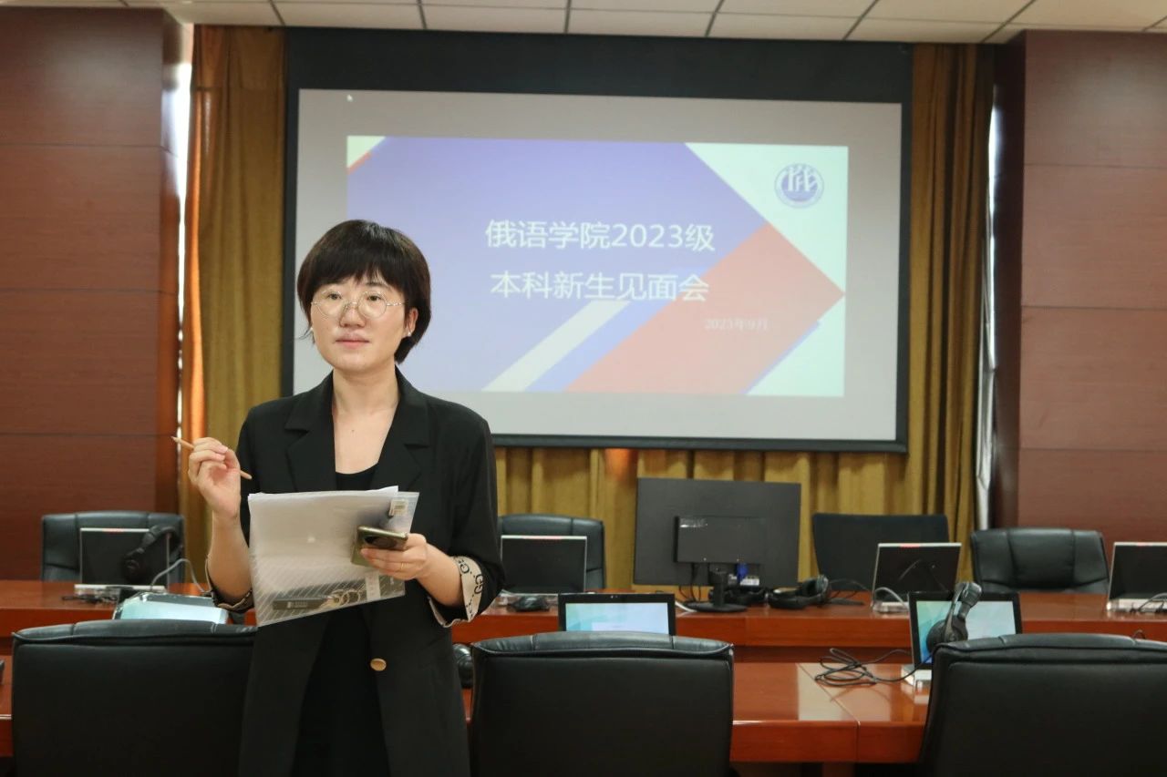 行政老师参加本次见面会,全体2023级新生共同聆听。