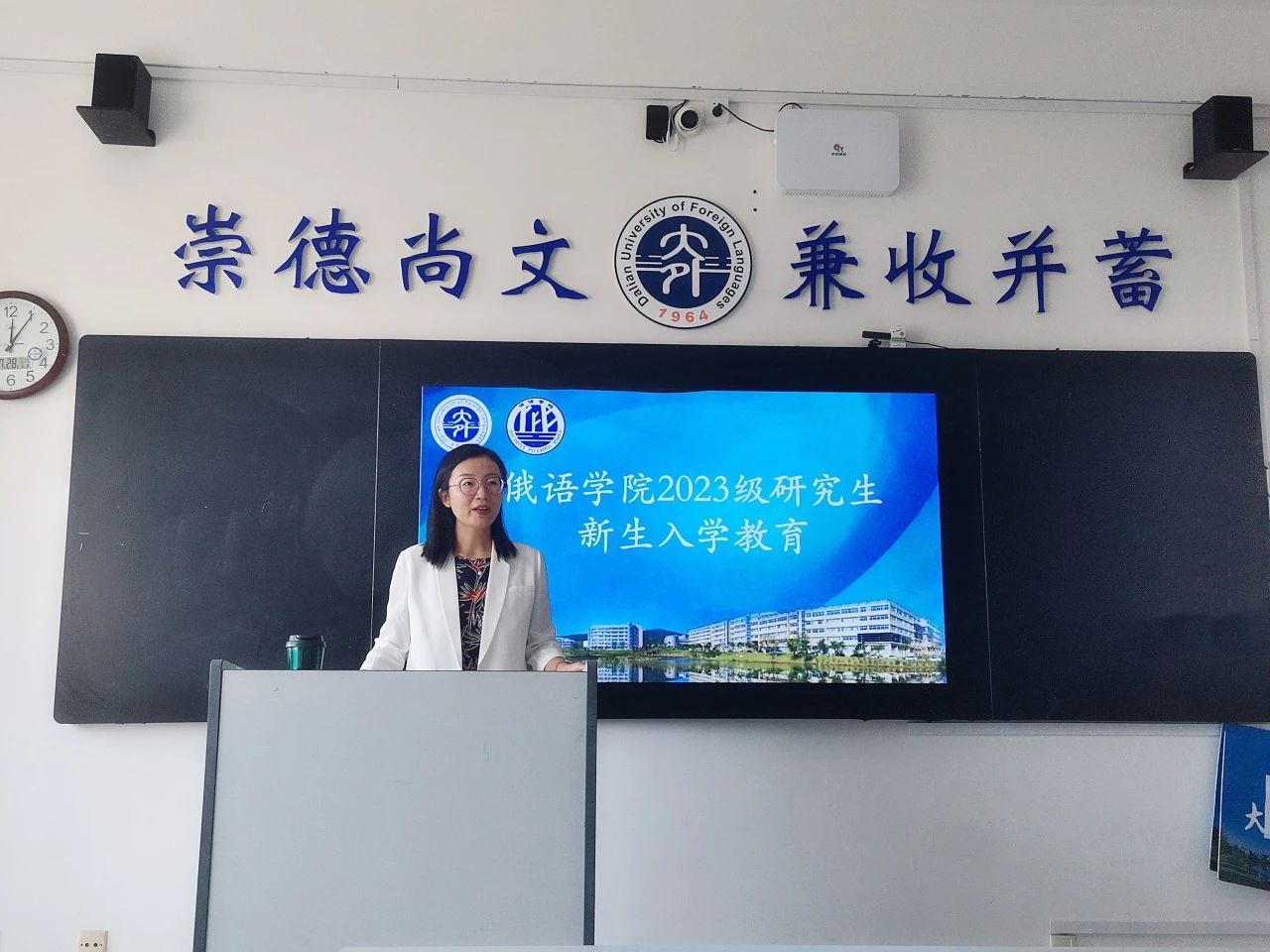 梁小楠书记首先向全体2023级研究生表示了欢迎。谈及对新生们的期望,梁书记建议大家尽快做好未来规划,做一个头脑清醒、有目标计划的研究生。接着她向同学们介绍了俄罗斯区域学方向博士人才培养的项目。机会总是留给有准备的人,在竞争如此激烈的背景下,她希望大家把握住机会,读研期间努力提高自己口笔译能力以及学术研究能力,以更好的姿态迎接未来的挑战。
