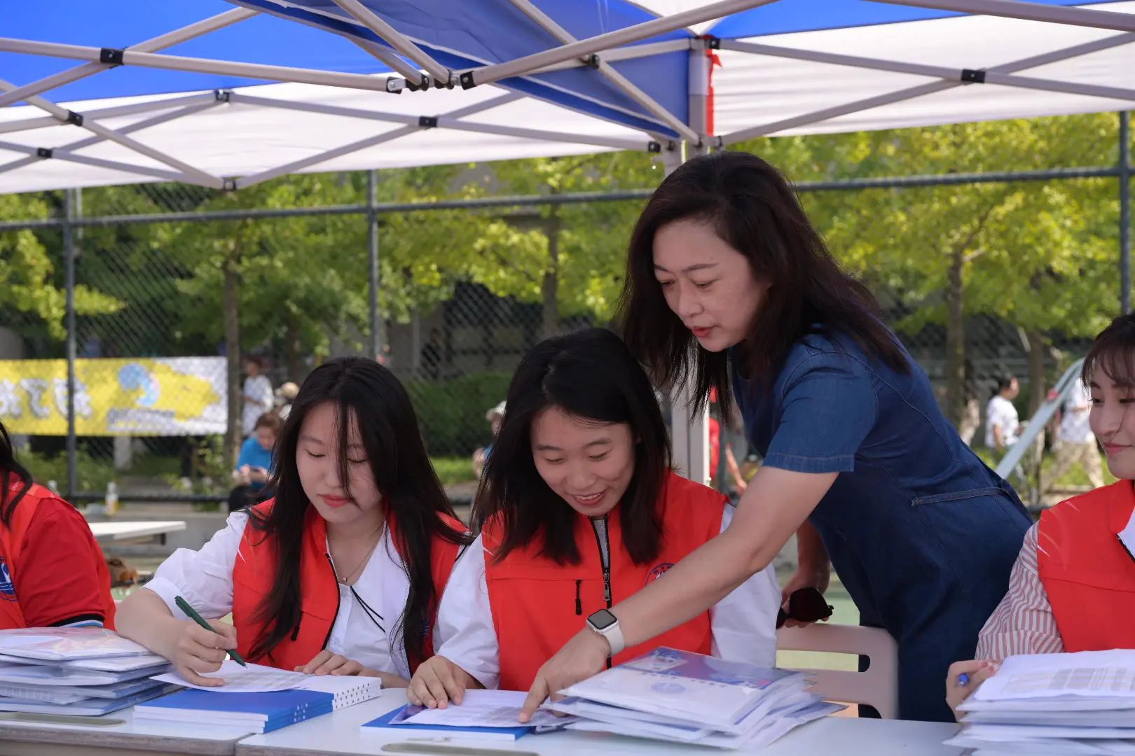 党总支书记梁小楠、副院长王钢、分团委书记王健、2023级新生辅导员美合日古丽·喀哈尔都到达迎新现场,与工作人员一同迎接新生到来。同时,校领导及各部门领导也在迎新现场对新生及家长表达关心与慰问。