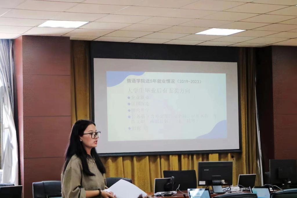 的发展历史、专业学科特色、国际化办学等情况向家长进行了介绍,针对学生和家长对于小语种学习的三个疑问进行了详细解答,最后希望可以家校联动、共同努力培养“有家国情怀、有全球视野、有专业本领”的新时代复合型外语人才。新生辅导员美合日古丽·喀哈尔就奖助学金、就业情况、学生管理、家校联合等工作进行了说明。随后党总支书记梁小楠就家长提出的问题进行了详细的解答。