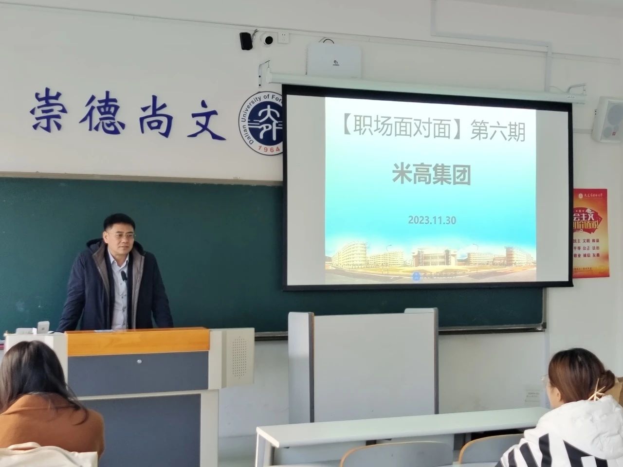 为帮助同学们明确自身职业方向,拓宽未来就业渠道,完善职业规划,皇冠信誉网 在11月30日下午2点在励学楼7B203教室开展了“职场面对面”第六期活动。本期邀请来自米高集团的刘经理和皇冠信誉网 2013届优秀毕业生张晓晓为各位同学带来职场经验分享。