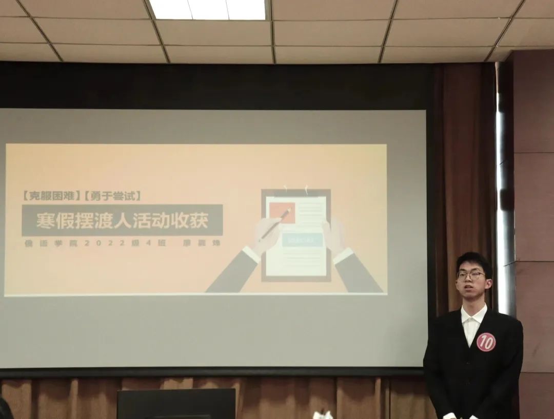 学生积极参加假期社会实践活动,加强了学生劳动教育工作的同时也为拓宽自身未来就业渠道提供了更多的机会,为个人发展积累了经验。选手们在讲台上的精彩演讲也激发了同学们对假期实习实践活动的兴趣,也相信会有越来越多的同学参与到假期实习实践活动中,不断进步提升自己!