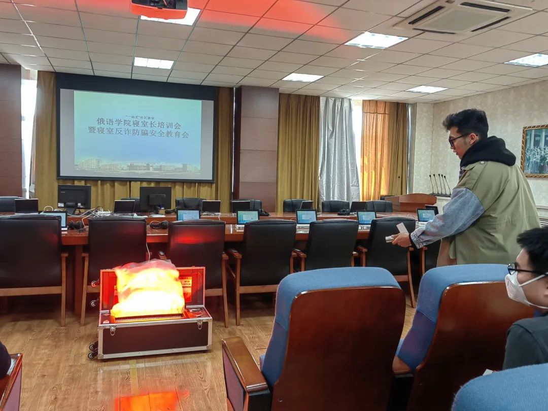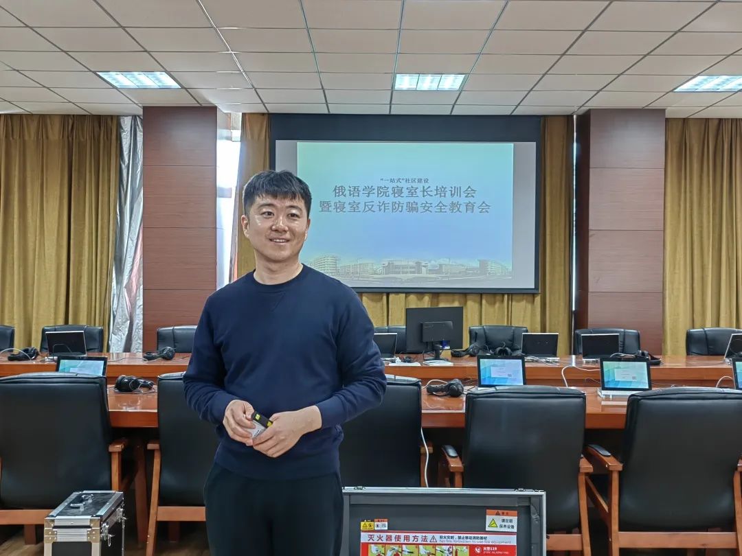 于3月29日下午在口译实验室召开寝室长培训会暨寝室反诈防骗安全教育会。辅导员王健、美合日古丽老师以及全体寝室长参加了此次培训会。