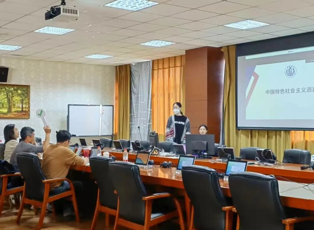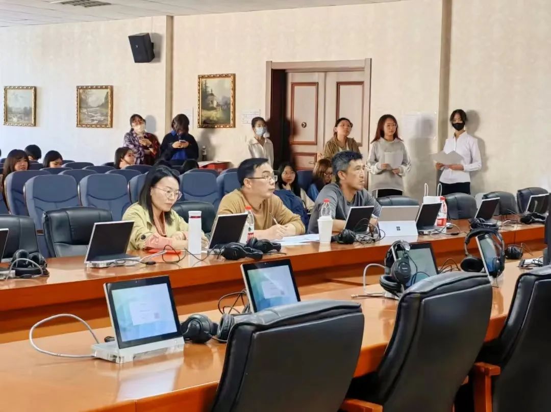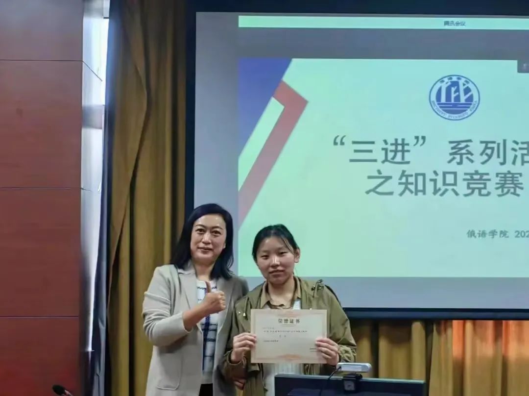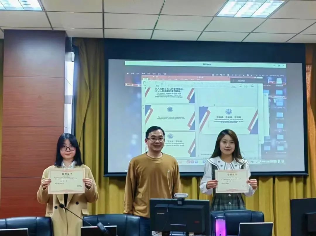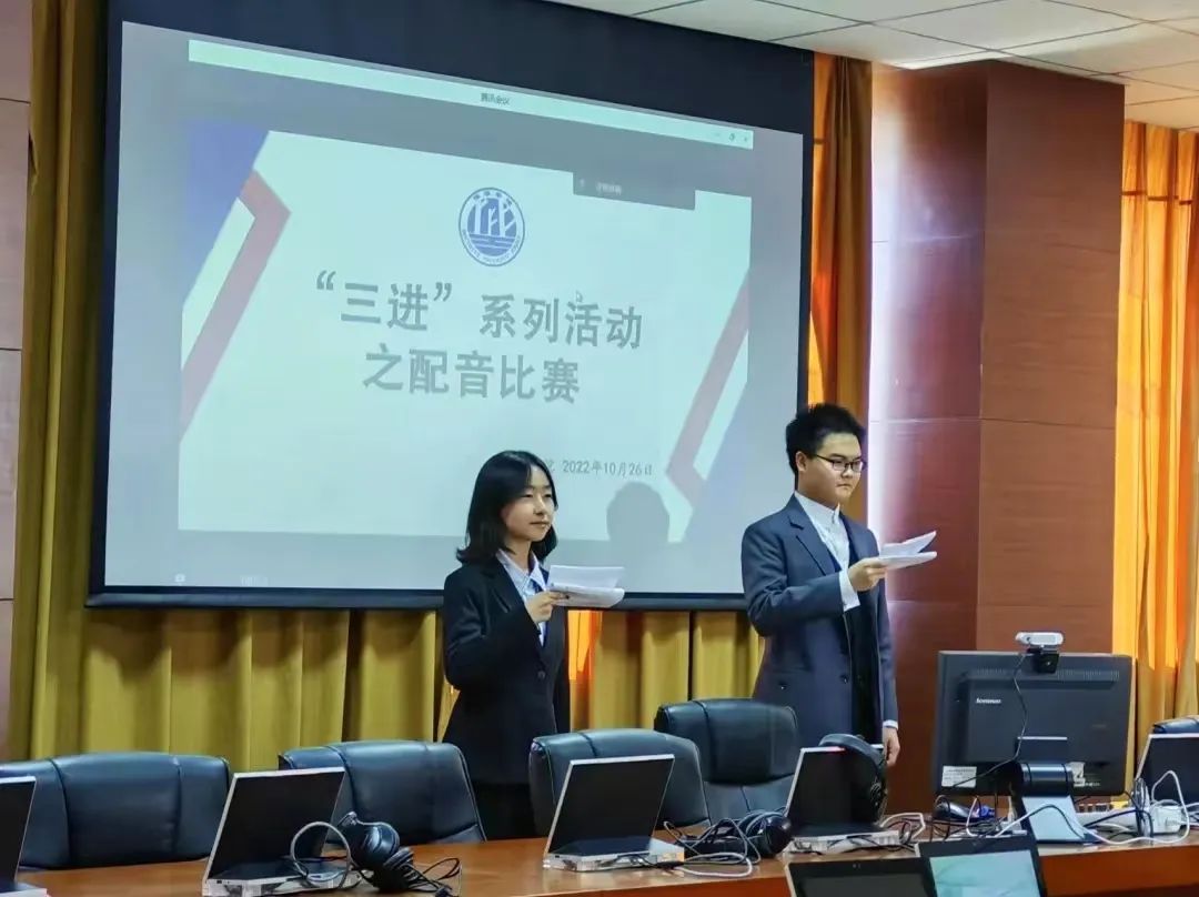 本次活动分为配音比赛和知识竞赛两个环节。配音比赛环节由杜洪军老师、刘华荣老师和刘艳春老师担任评委。共十一组参赛人员将红色影视艺术与俄语语言相结合,用饱满、标准的发音向大家演绎了俄院学子的能力与风采,生动的配音流露出当代青年人独到的见解与观点,带动着评委和观众们的情感。配音比赛结束后,由杜洪军老师进行总结点评,杜老师指出:同学们响应并积极参与“三进”活动值得表扬,配音比赛在锻炼学生语言表达能力的同时,也引导学生深刻认识到百年奋斗的重大成就和历史经验的重大意义。