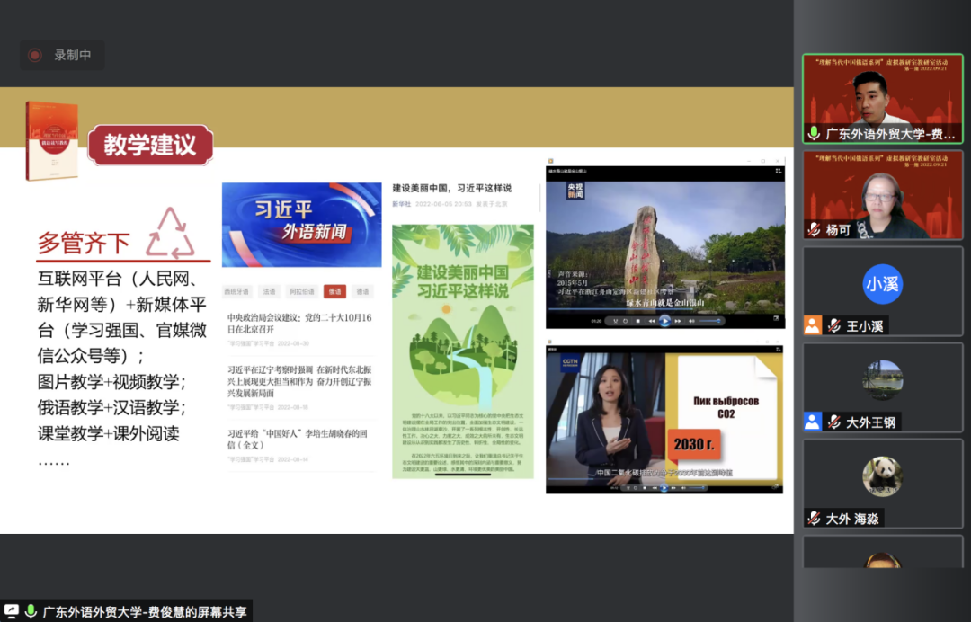 刘宏教授负责的教育部“理解当代中国俄语系列”虚拟教研室第一期教研活动在云端成功举办。