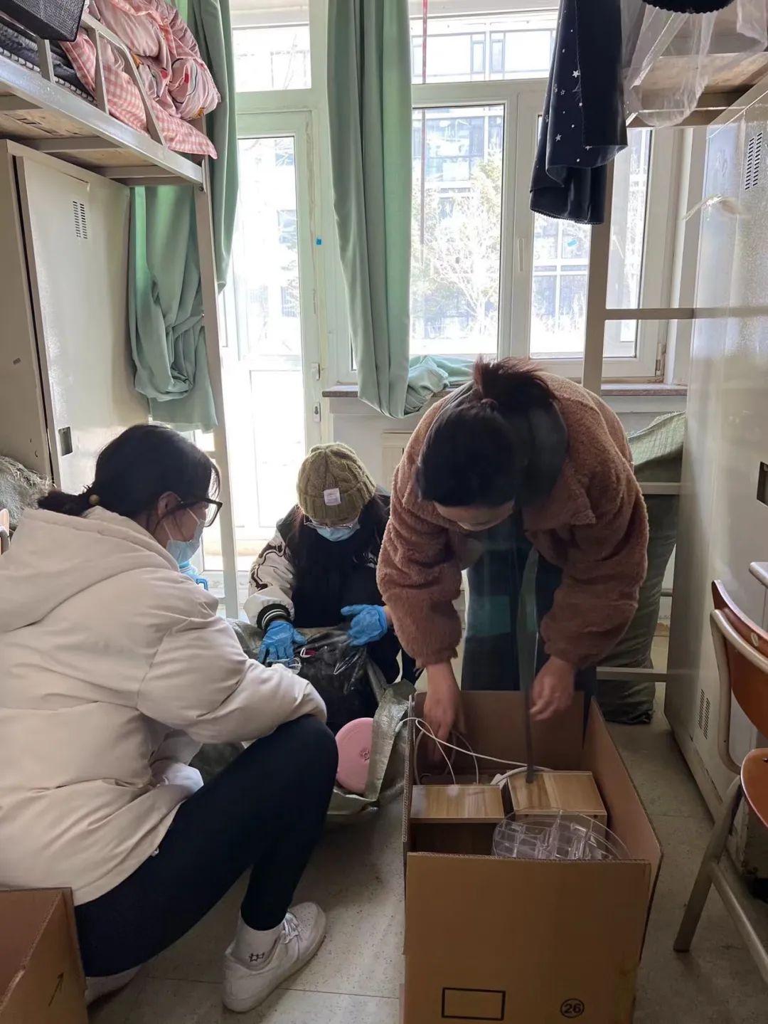 疫情防控突击队队员的帮助下焕然一新。物品打包整理完成之后,大家还将遗留的垃圾清理干净,减少宿管阿姨打扫卫生的工作量,这些充分体现了作为党员的基本素养。