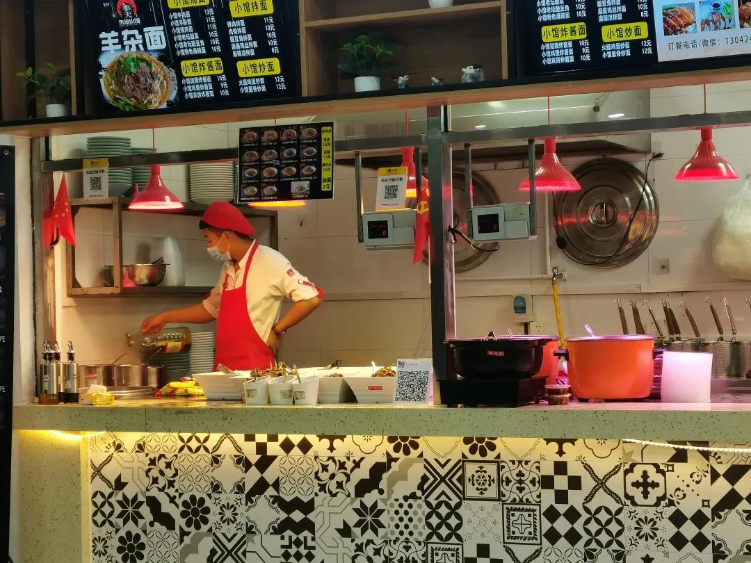 他们或是手持电话仍兼顾生意,或是同时在几个锅间不停翻炒,或是认认真真地收拾碗筷,用辛苦忙碌填满大家的胃口。