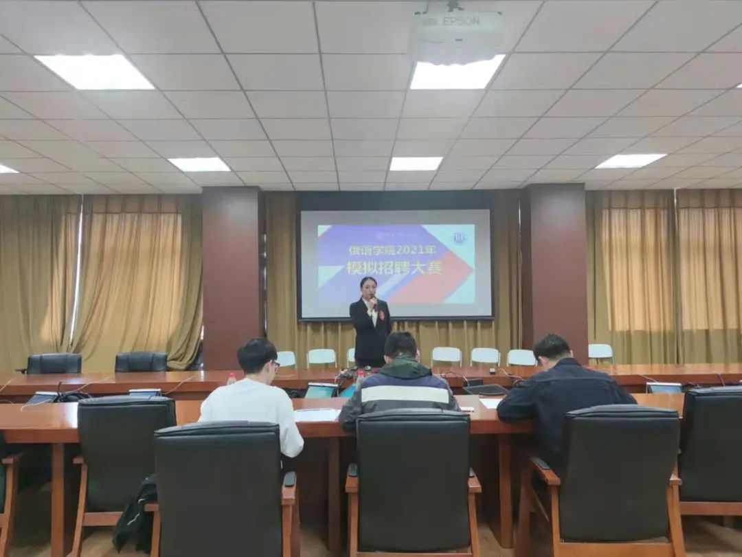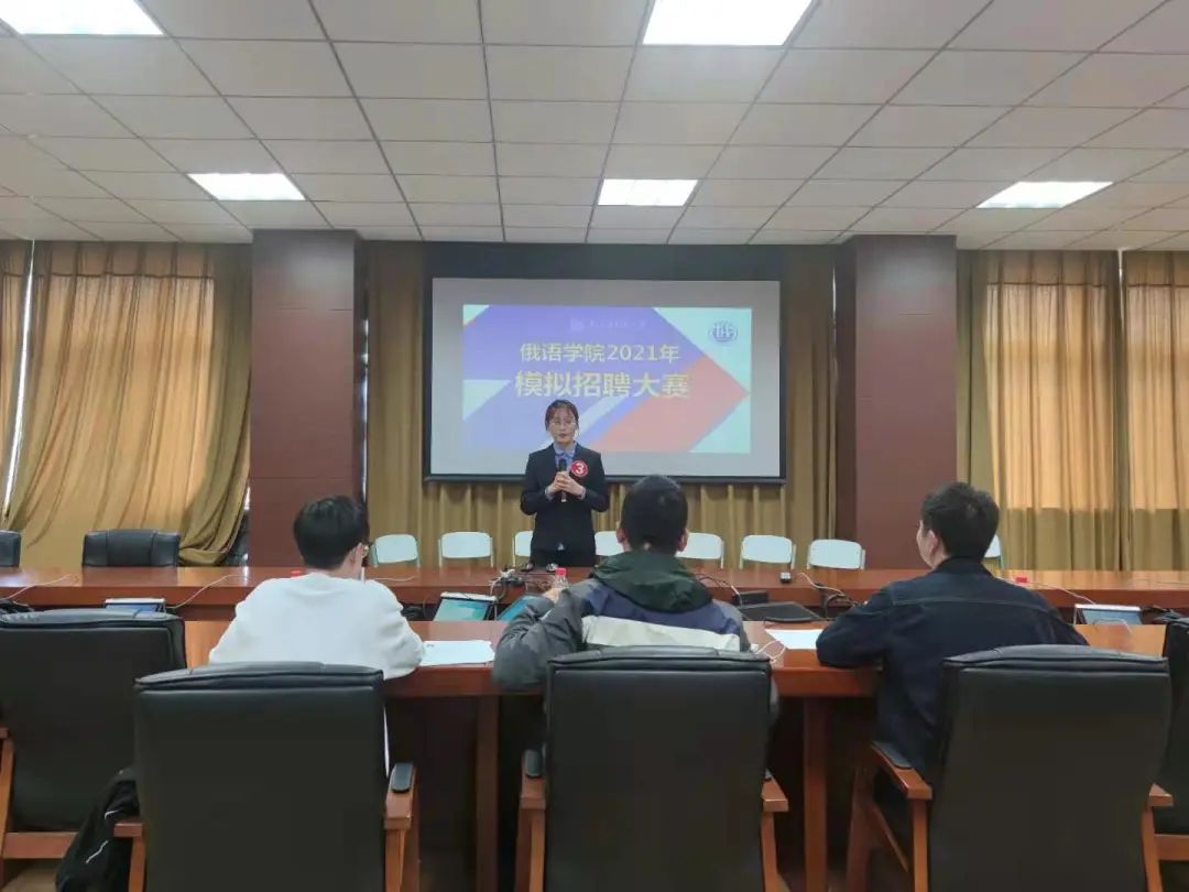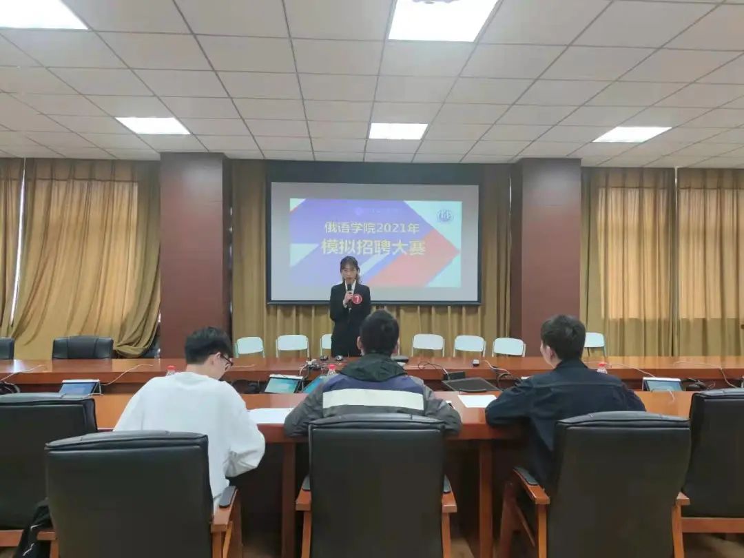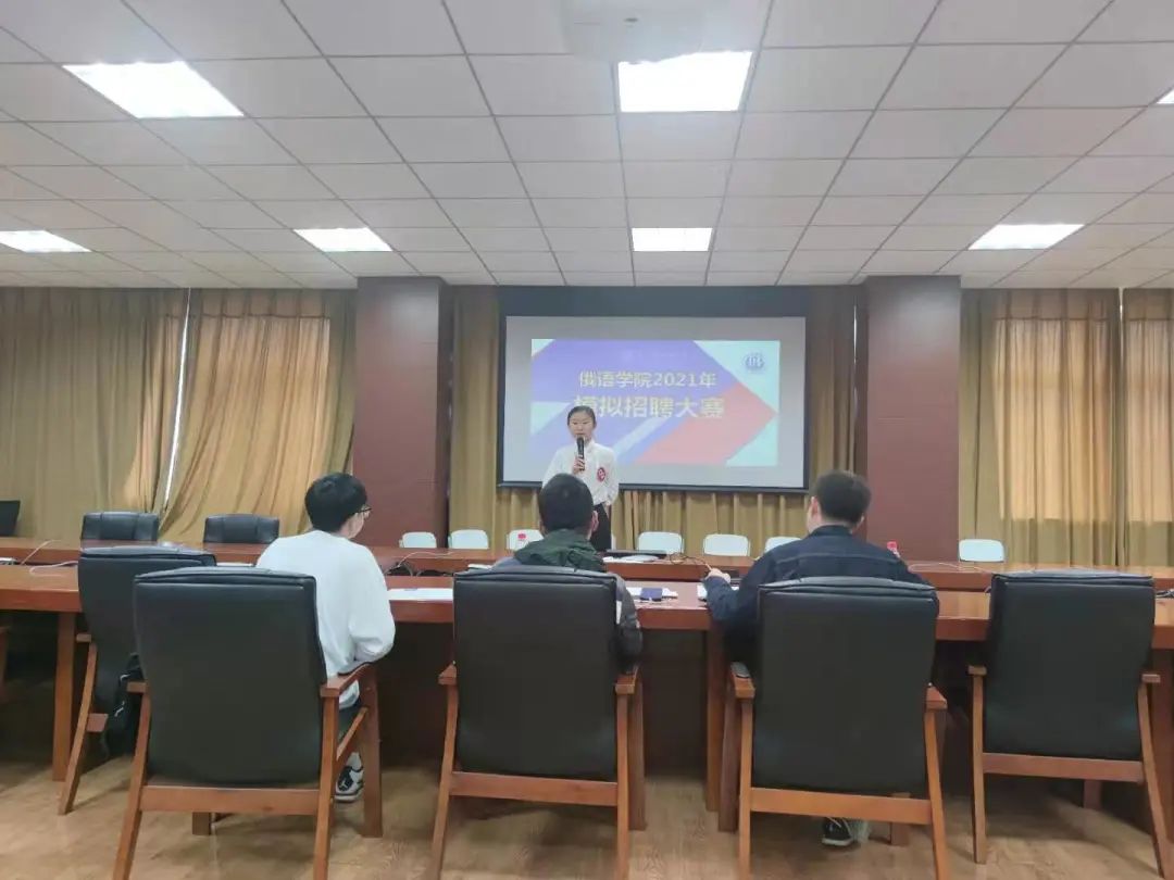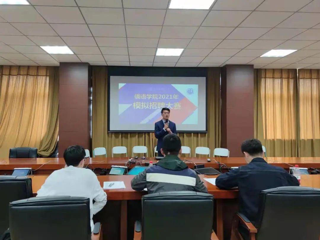 面对大学生就业的严峻形势以及人才市场的激烈竞争,为使同学们进一步了解招聘过程中的流程,做好皇冠信誉网 的就业指导工作,皇冠信誉网 于4月21日下午1点30分在励学楼口译实验室举办了2021年模拟招聘大赛决赛。