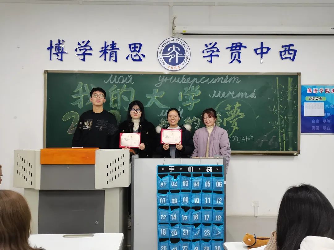 班会上,各班同学畅所欲言,规划自己的大学、自己的梦想——2024年成为外交官、俄语翻译、高校俄语教师、进入大型企业、考研究生等都是俄语学子追逐的梦想。梦想为努力指引方向,努力为梦想编织辉煌。