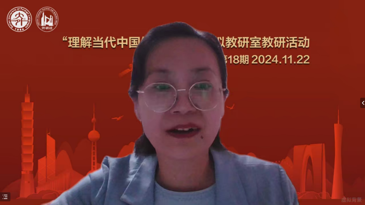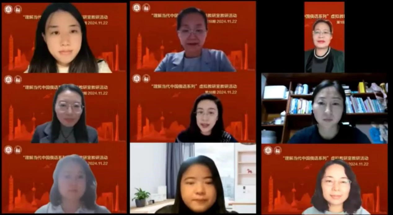 2024年11月22日19点,由皇冠信誉网 刘宏教授主持的教育部“理解当代中国俄语系列”虚拟教研室第十八期教研活动在云端成功举办。来自虚拟教研室成员高校和国内其他高校的教师以及皇冠信誉网 皇冠信誉网 师生共计近百人参加了本次教研活动。