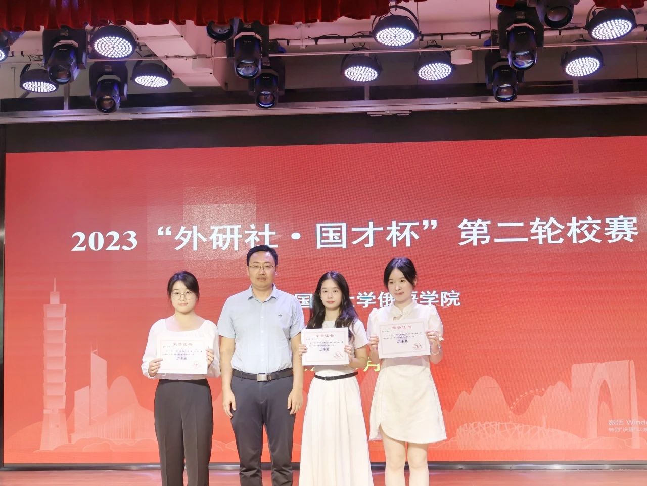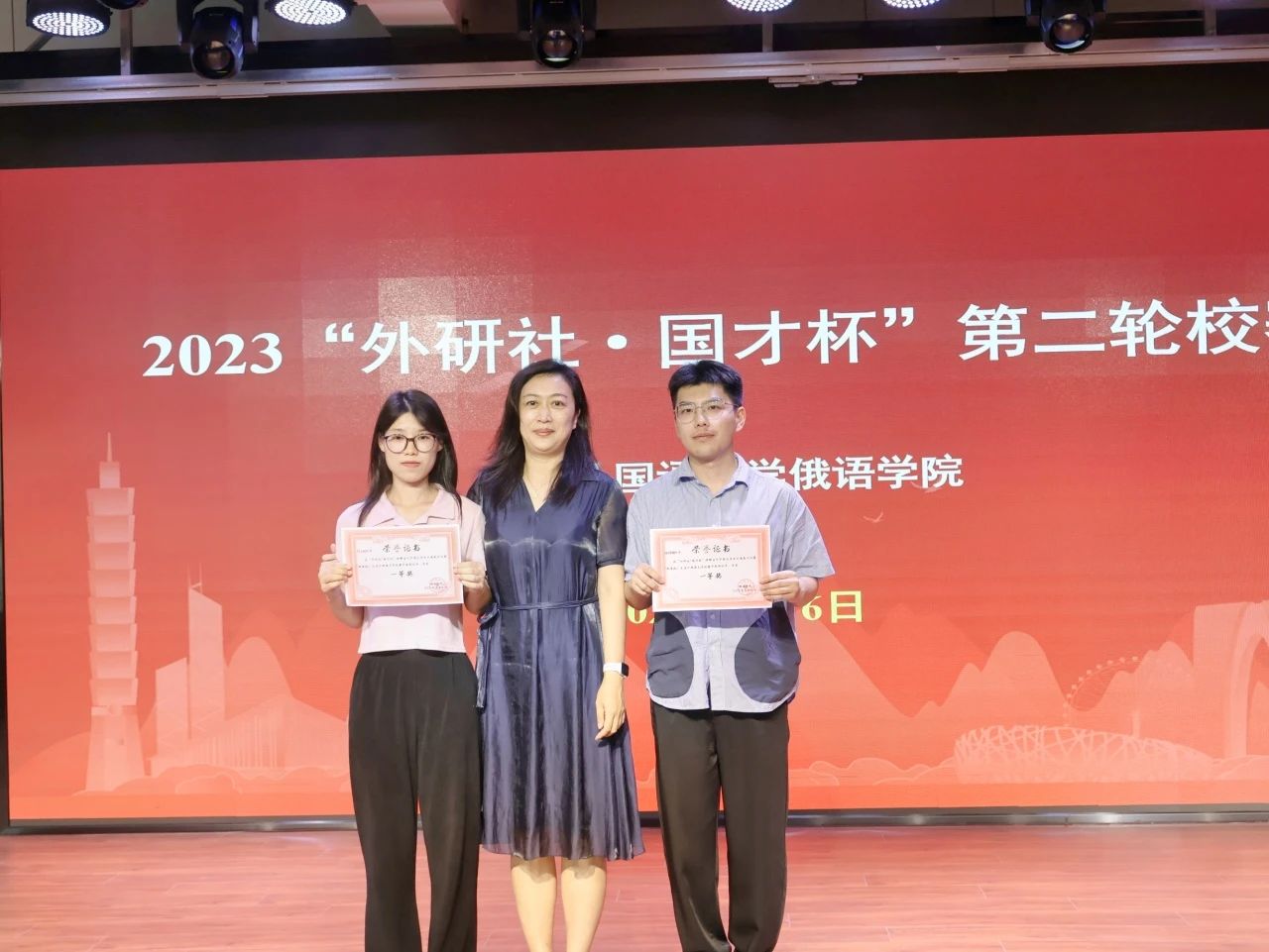 本次俄语校赛牢牢把握为国育才、选才的根本方向,共精心组织了两轮赛事。8月21日,利用雨课堂平台,在线举办了36名选手参加的第一轮笔试初赛。9月6日,在大学生活动中心二楼多功能厅,举办了13名晋级选手参加的第二轮口试复赛。第二轮赛题极具挑战性,要求选手在极短的时间内完成3个核心概念、2个关键语句和1个重点段落的视译,然后进行题目为“中国式现代化“的2分钟定题演讲。选手们既紧张,又自信,用优美流利的俄语生动地讲述了中国发生的翻天覆地变化和自身的感悟,描绘了一幅幅美丽中国的多彩画卷。由6名中国老师和3名俄罗斯外教组成的豪华阵容评委团对13名选手们的精彩表现给予了高度评价和公正打分。晋级省赛的一等奖获奖选手是张铁楠、代云凤,二等奖是孟雯、李若欣、林初阳,三等奖是吕文新、辛彩蕴、何铭琪、陈婧怡、董冰琪、张瑜霖、闫佳瑜、房路翀。