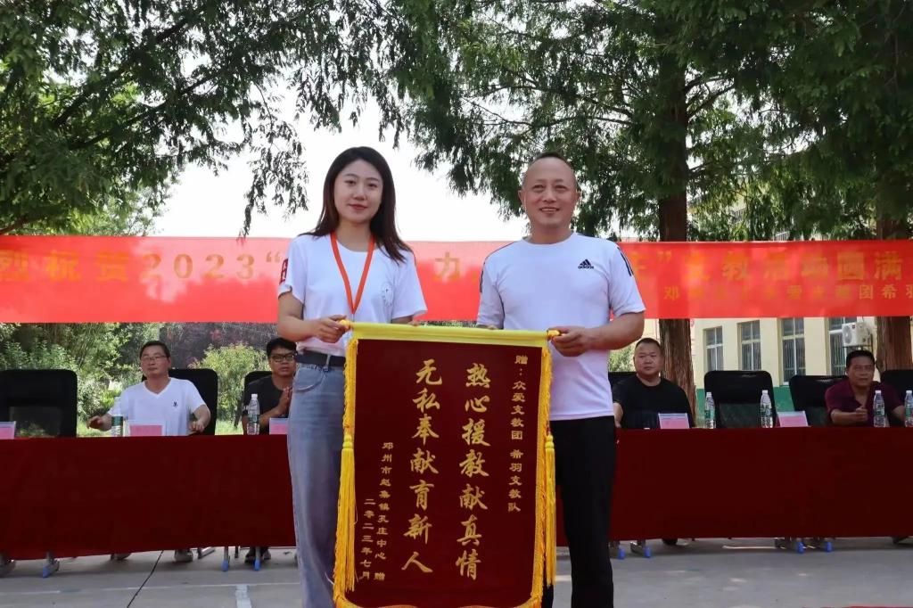 本次支教活动是由邓州义工联合会下属组织众爱支教团承办开展。由众爱支教团审核、选拔各高校学生组成支教团队,分成5支支教队前往河南、安徽等地偏远学校,进行为期三周的教学。本次支教任务的主旨是健全乡村儿童的全面发展,对乡村儿童的兴趣发展、课余技能进行培养锻炼,以契合德智体美劳全面发展的教育趋向目标。最终,孔庄中心小学的支教成果受到了邓州市团支委、妇联、义工联合会、孔庄校等组织的大力赞扬,并制作推文登上邓州头条。也受到邓州市人民的热情赞美,收到锦旗嘉奖。