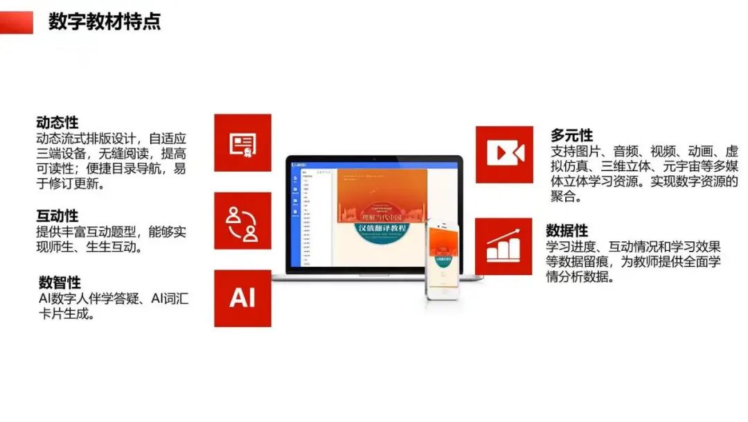 王老师讲解政策背景时指出,在教育数字化战略推动下,数字教材凭借动态更新、多媒体融合、交互性强及学情数据可追踪等优势,正逐步替代传统教材。外研社已上线《汉俄翻译教程》等多语种数字教材,并通过流式排版技术整合思维导图导航、智能题库和即时互动功能,构建兼具系统性与灵活性的数字资源体系。针对教师数字素养提升,王老师提出多维路径:通过新形态教材重塑教学流程,依托优校园智慧教学云平台实现备课授课智能化,结合AI助手降低技术门槛,同时开展虚拟教研室培训,破解教师面临的技术适应与时间成本难题。在教学模式创新方面,智慧云平台集成签到、投票、分层作业等18项互动工具,并通过对教学行为数据的深度分析,生成可视化学情报告,助力教师精准定位教学问题,实现从经验驱动到数据驱动的教学决策转型。王老师总结道,这种“资源+平台+数据”的立体化解决方案,标志着教育信息化已从技术叠加迈向深度融通、真正赋能教学本质的新阶段。